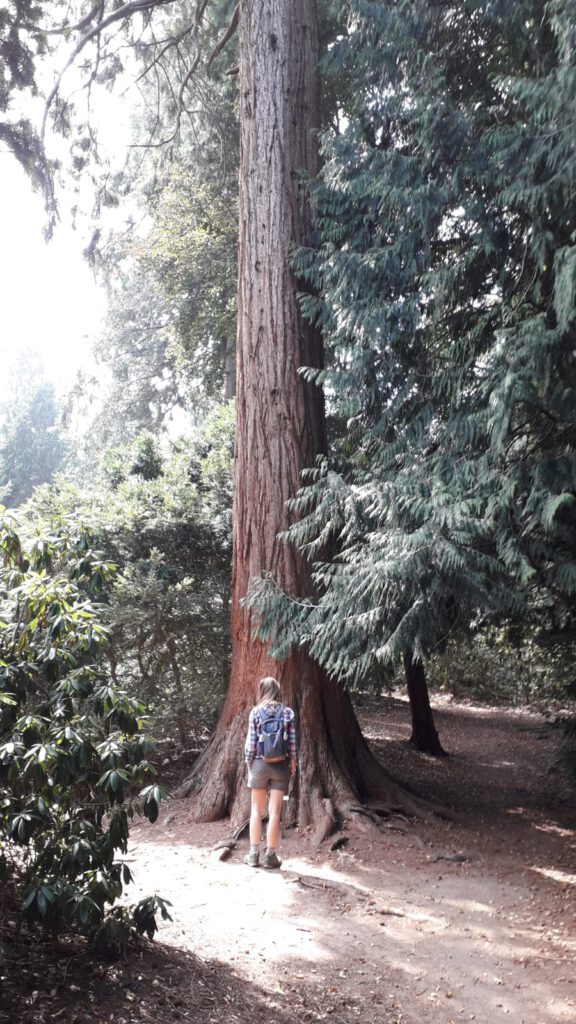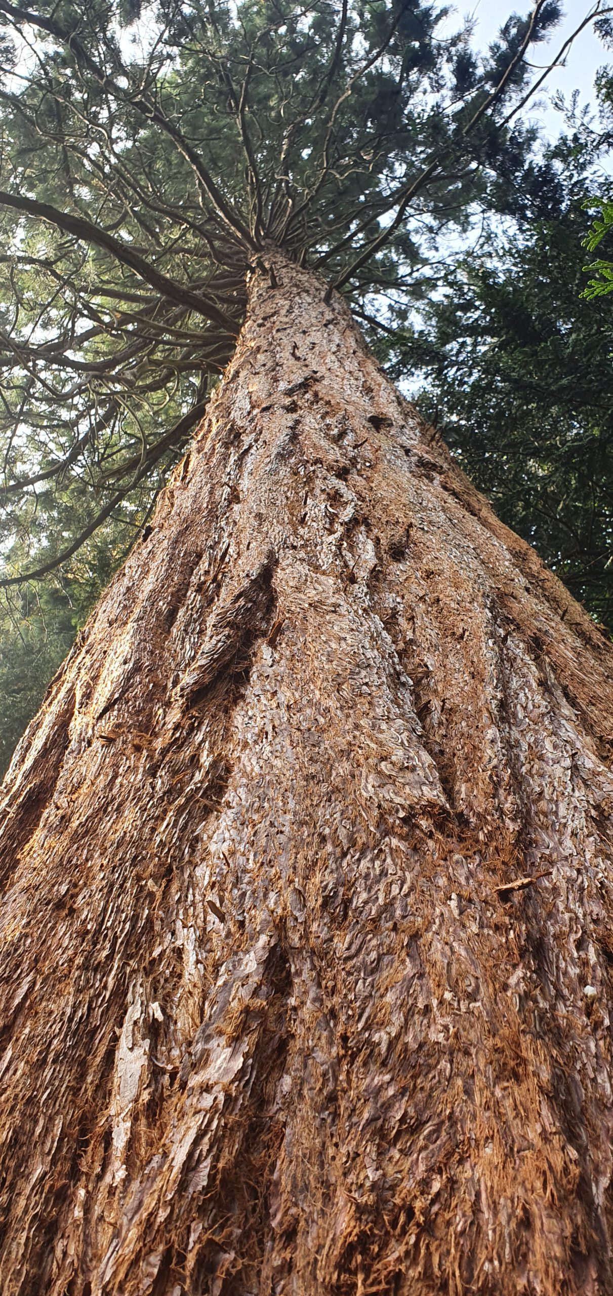 Geïnspireerd door deze Mammoetboom (Sequoiadendron giganteum). Geplant in 1853 dus hij is zo’n 167 jaar oud en staat op Landgoed Schovenhorst. Van het aanzicht van zo’n leeftijd wordt je instant bescheiden. Verwonderd mijmerde ik verder.